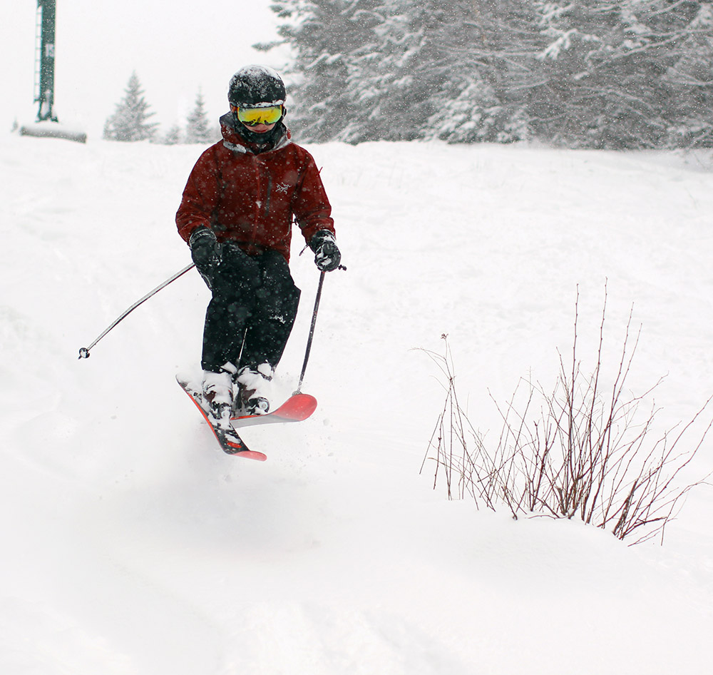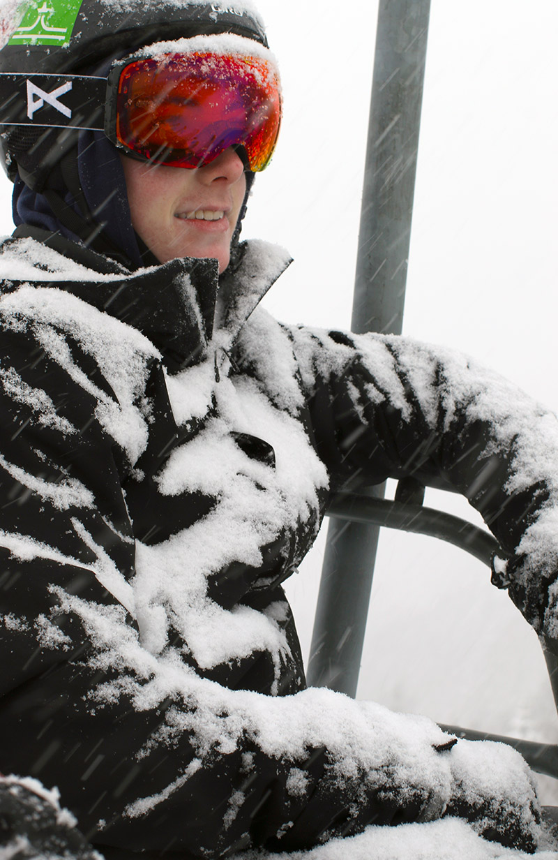 Dylan out surfing some powder today on the slopes of Bolton Valley. Winter Storm Izzy kept refreshing the surfaces all day with impressive 1 to 2 inch per hour snowfall rates.