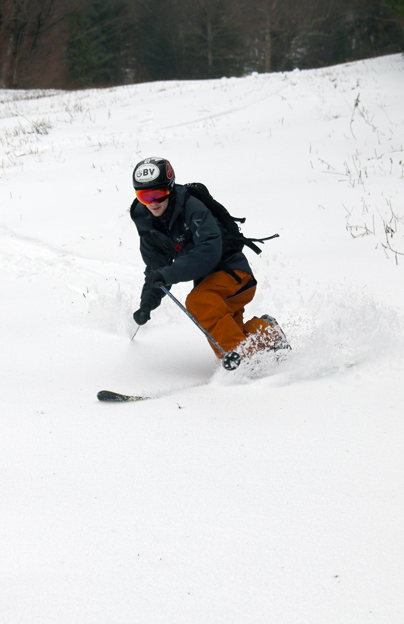 Dylan surfing some powder near the Bolton Lodge during today’s backcountry tour