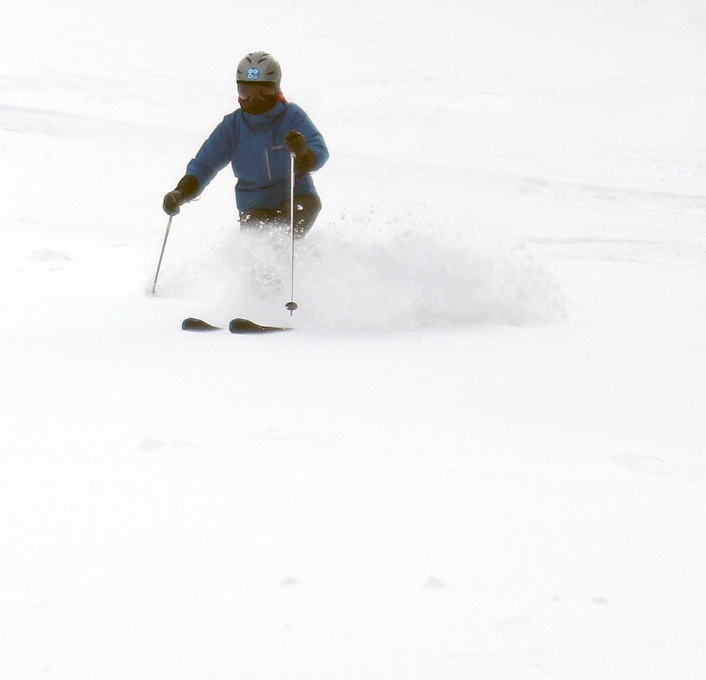 The temperatures this morning was pretty cold, down in the single digits F, so I found the snow a bit slow except for the less settled/lower density areas. The more consolidated areas of powder with the finer grains or wind-based compaction were just on the slow side due to the combination of temperatures and the snow density