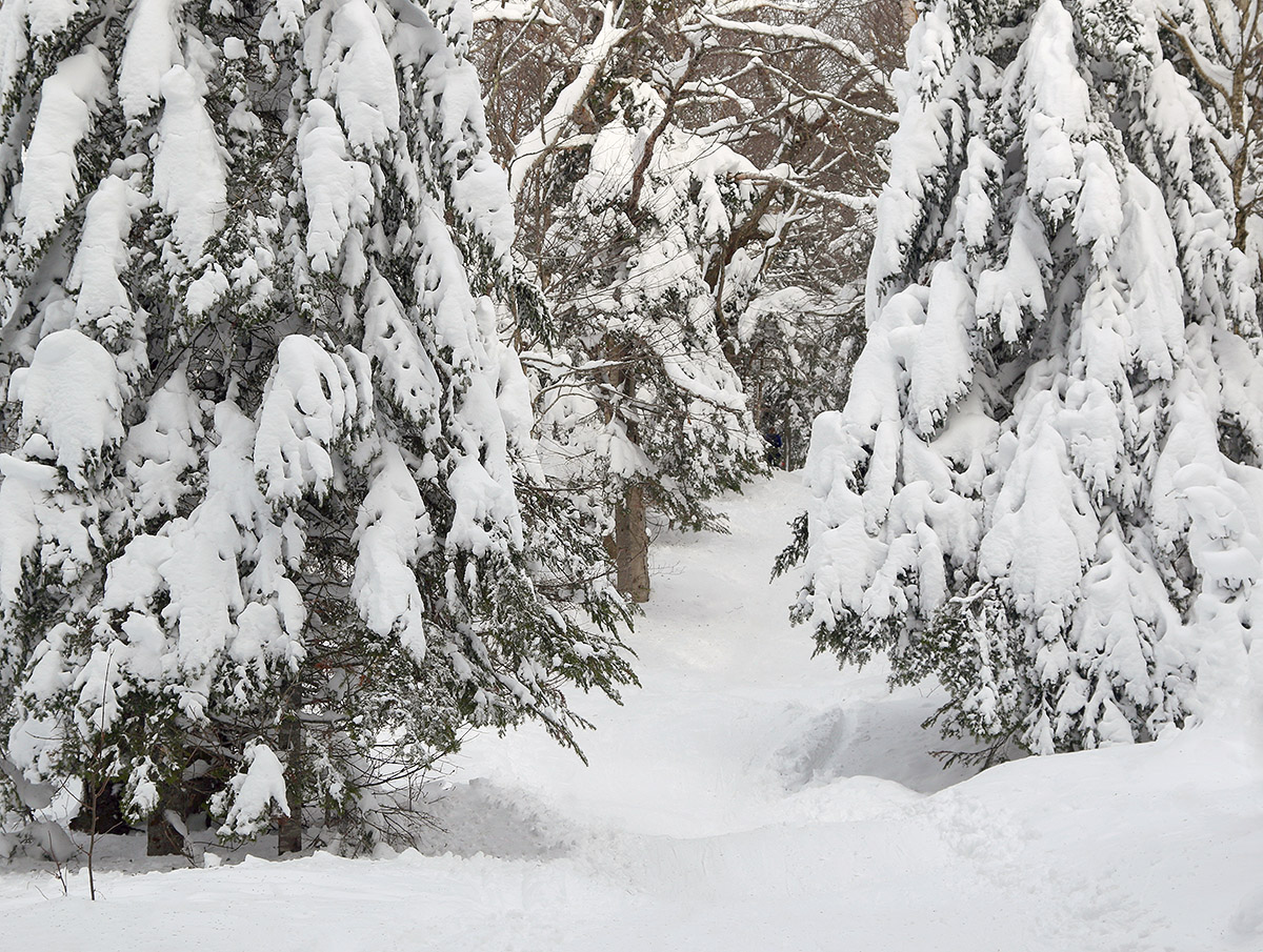Today had been looking like a good ski day for quite a while. The cold air was moving out to bring our temperatures back up into the 20s F, and low pressure from the Ontario/Quebec border passing southeast across our region looked to bring us more fresh snow. The weather models had been showing a nice shot of liquid equivalent coming into the area, and it seemed to hold some potential for a nice topping off of the current powder that’s out there.