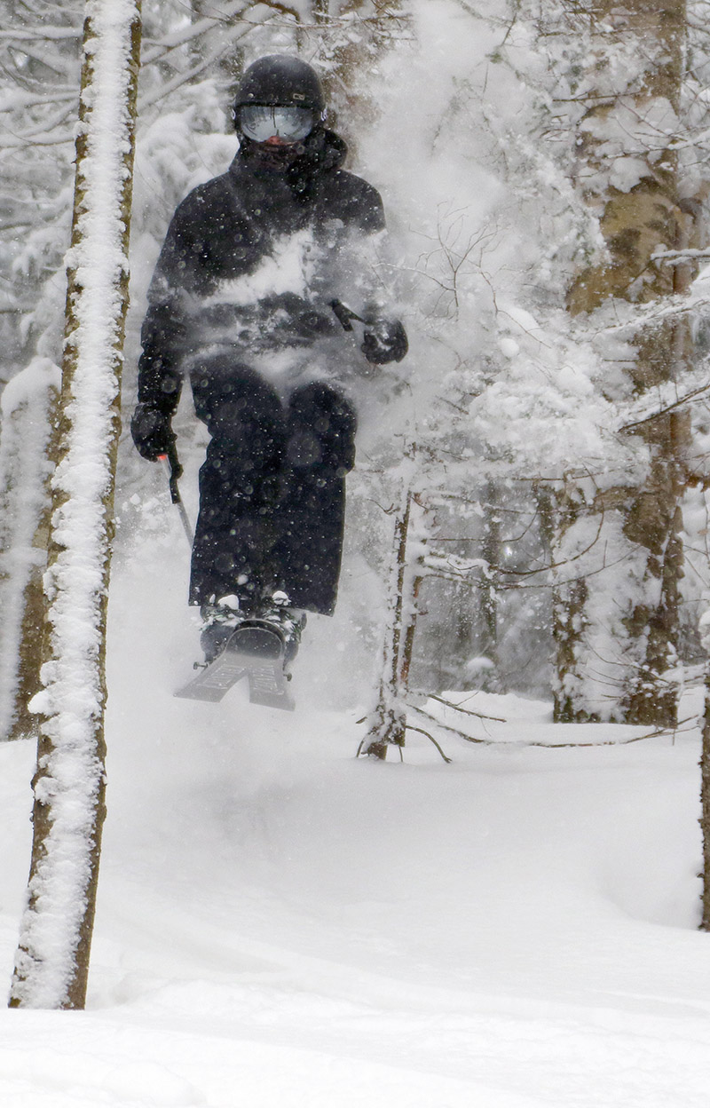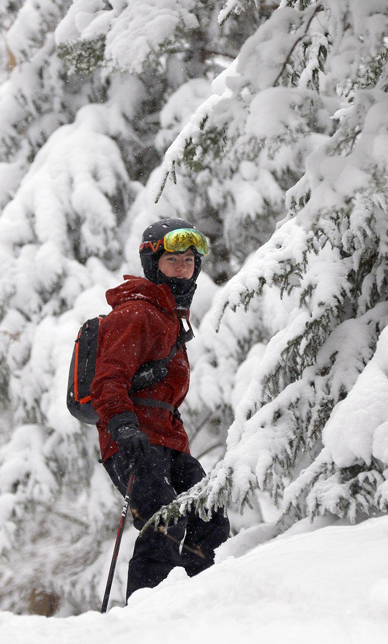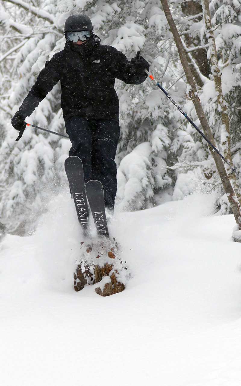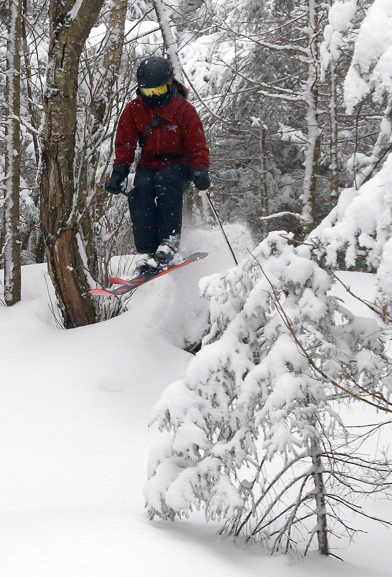With the new snow not coming in until mid-morning, we’d planned on a late morning start up at Bolton Valley. That timing worked out well, because they’d already picked up a few additional inches from the intense snowfall. And, the snow that had just fallen was the perfect consistency to top off all the powder that was already out there – my morning liquid analyses from the house revealed that the snow came in at just 1 to 2% H2O. So, it was incredibly dry and set up some excellent right-side-up, bottomless powder skiing.