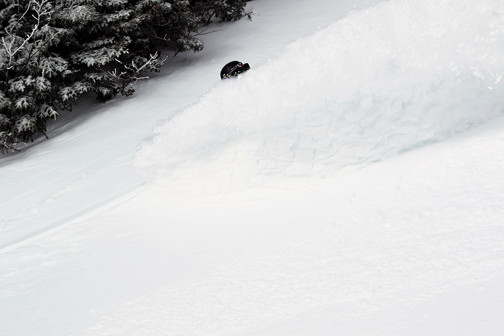 Ty blasts his way through some of today’s fresh powder in Bolton’s Timberline area today. Thanks to plenty of liquid equivalent in this recent snow from Winter Storm Quest, you could charge as hard as you wanted on even the steepest terrain and get soft, reliable turns.