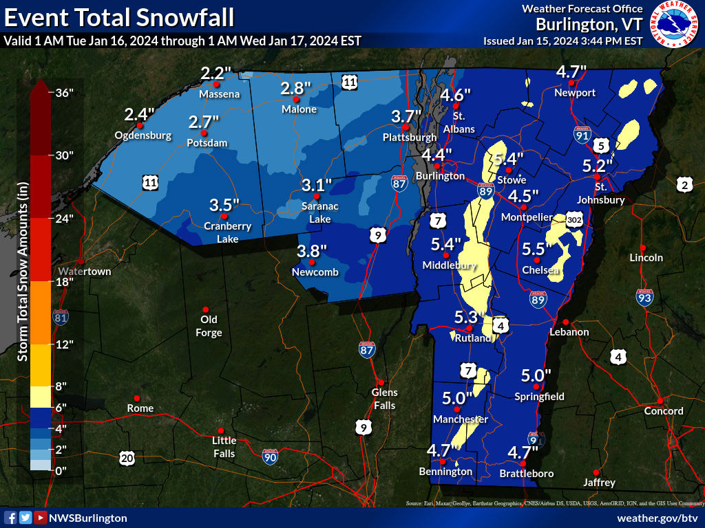 In this morning’s update, Bolton Valley  was reporting an additional 3-5” of snow from yesterday’s lake-effect snow and snow squalls. The other recent snowfall numbers they had in their report looked solid, with 12” in the last two days, 27″ since Tuesday night and more than 48” for the first half of the month. The season snowfall for the resort currently stands at 157”, and that’s very respectable since it’s already about half their annual snowfall average when we’re not even halfway through the snowfall season.  What makes that pace more impressive is that they’ve had all that snowfall despite the second half of December being quite lean on snow. That really speaks to how much has been falling up there during the snowier periods.