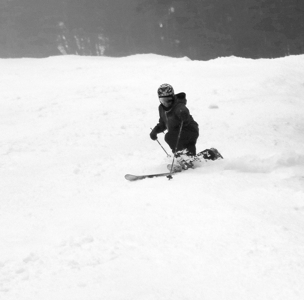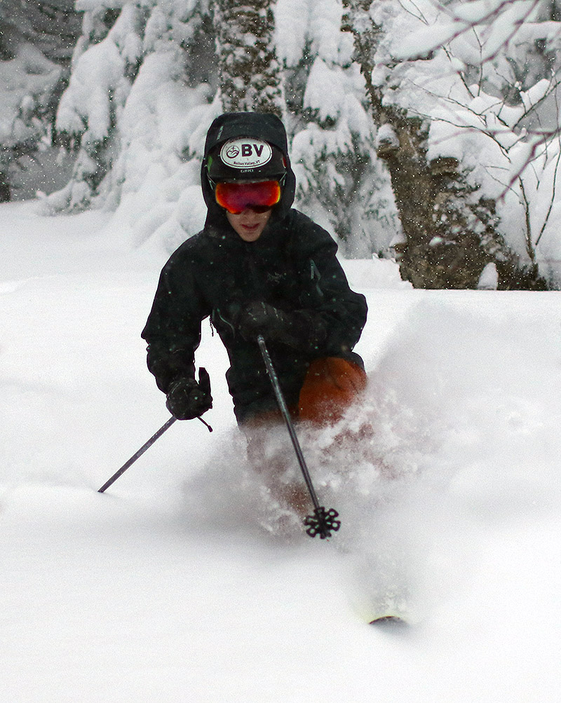 E getting some fresh turns on Snowflake Bentley during this morning’s outing at Bolton Valley