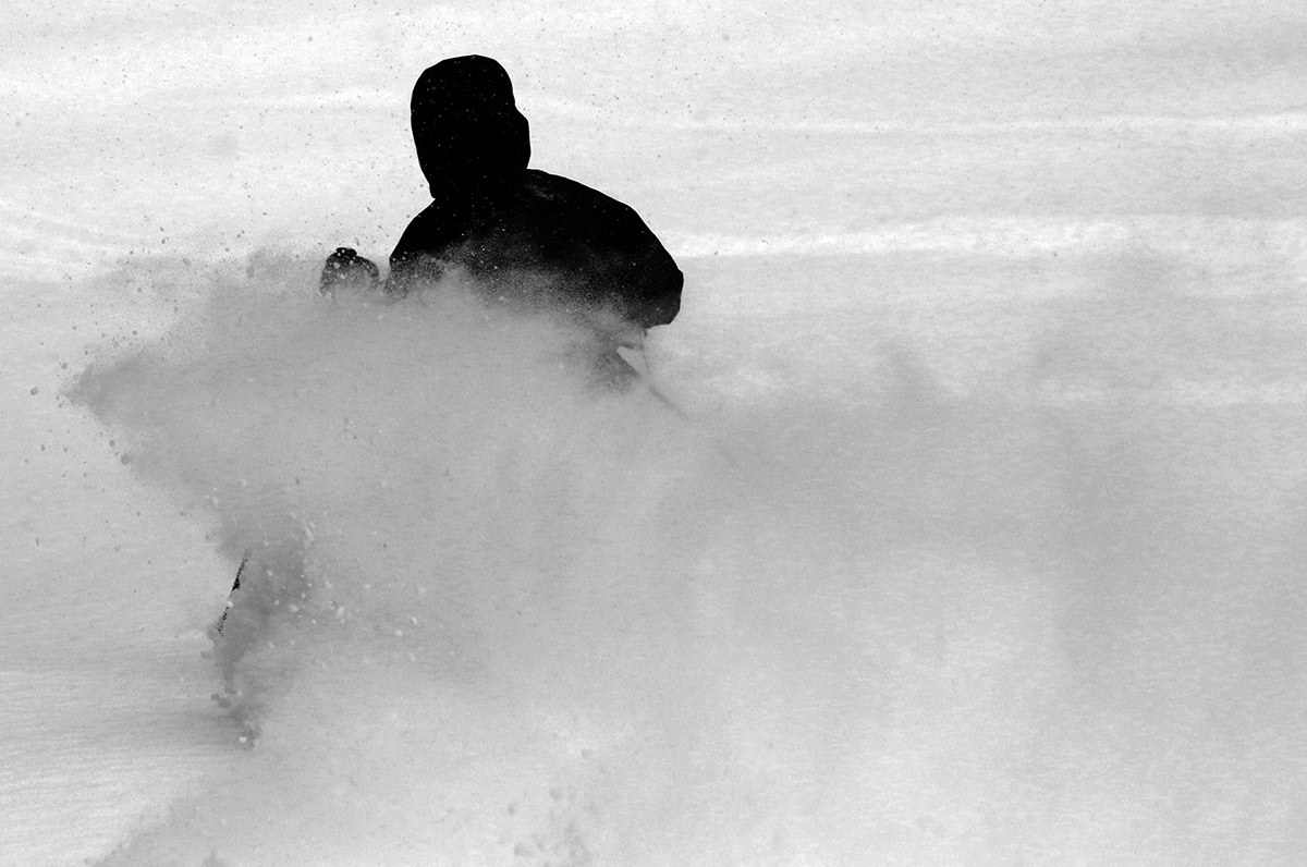 Ty drops a knee as he dives into some of the Bolton Valley powder delivered by the start of Winter Storm Ember today.