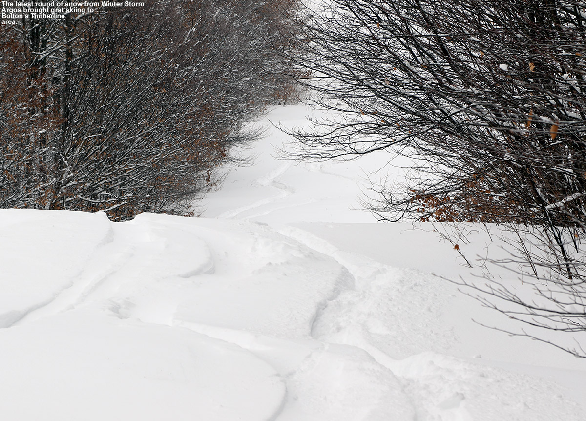 Powder depths were very similar to what I found yesterday with respect to similar elevations. I was curious if there might be a difference in surface snow depths since I was about 12 miles farther north in the Northern Greens, but my measurements didn’t reveal any substantial differences. I did ascend substantially higher on this tour though, so it let me add on to what I’d found yesterday. The powder depth profile I found today was as follows: