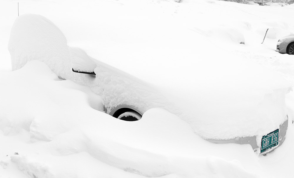 Accumulations finally started to take hold down at our elevation of 500 feet in the Winooski Valley in Waterbury when one of the more potent cells of precipitation crossed the spine of the Green Mountains in our area.