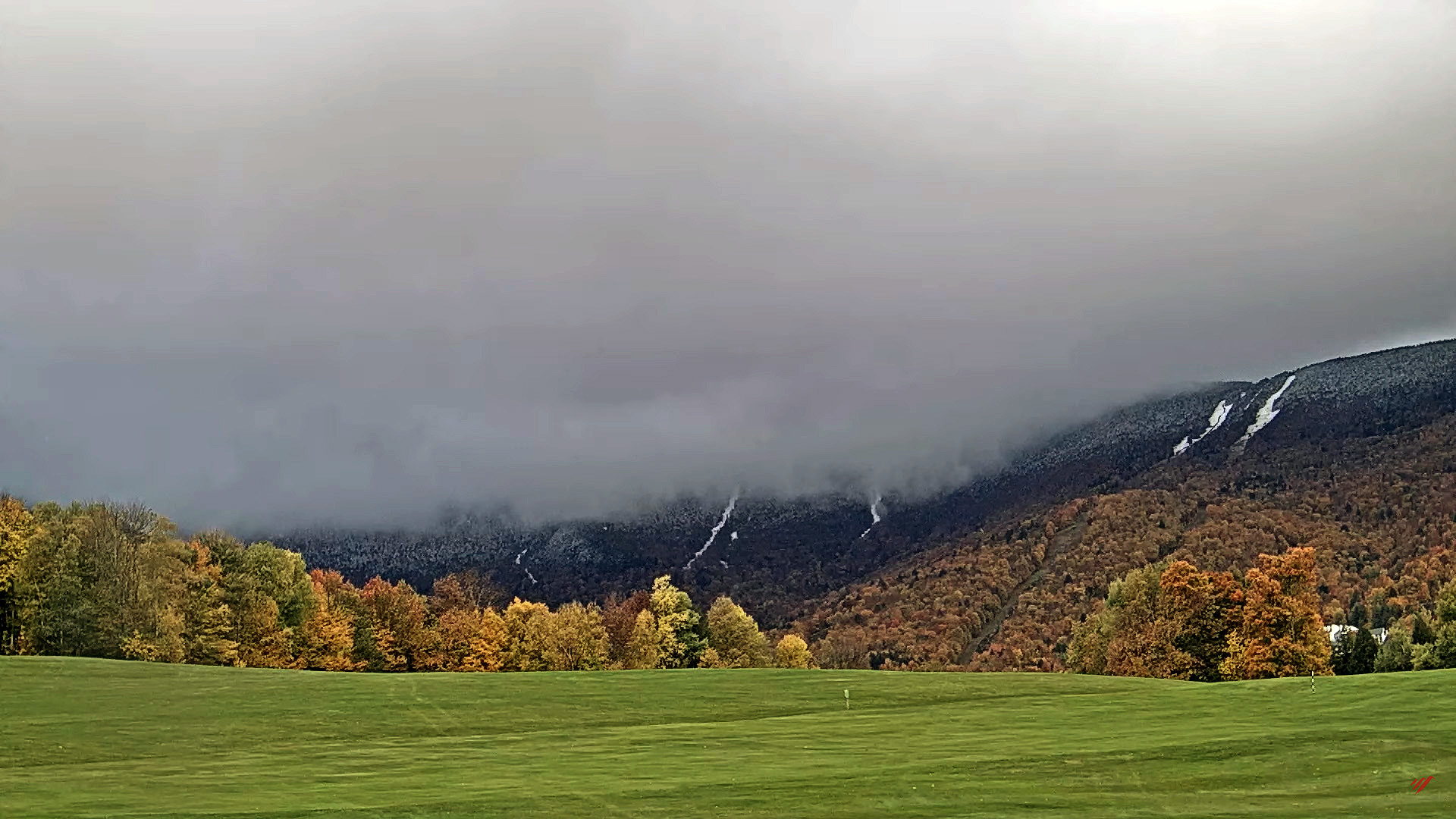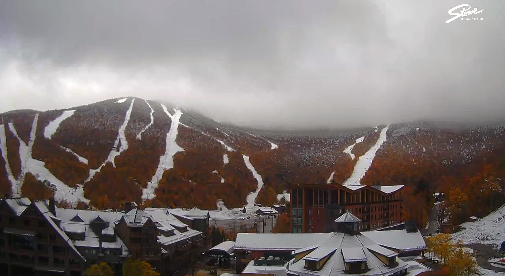 Residual accumulations visible on the Stowe Mountain Resort webcam thanks to our most recent round of early season snows