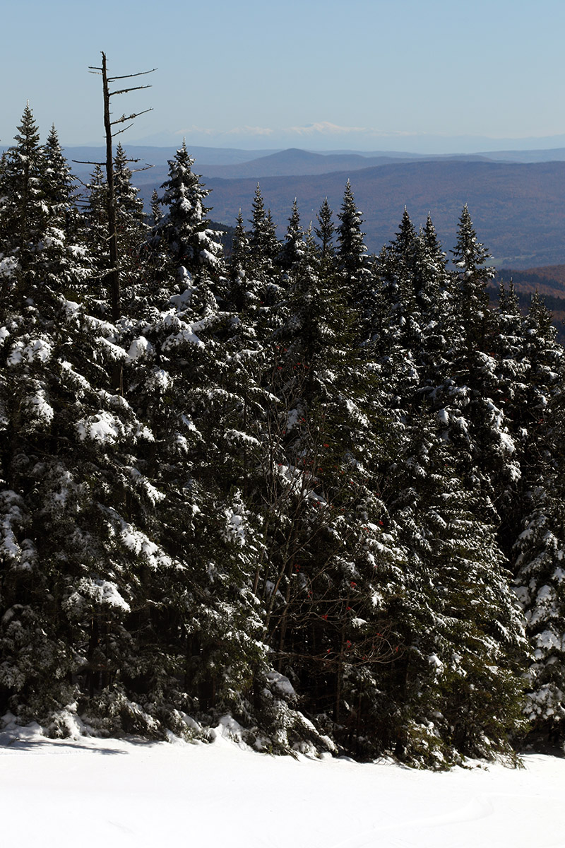 A view of the beautiful snow and foliage from the Top Notch area on my approach to the mountain today.