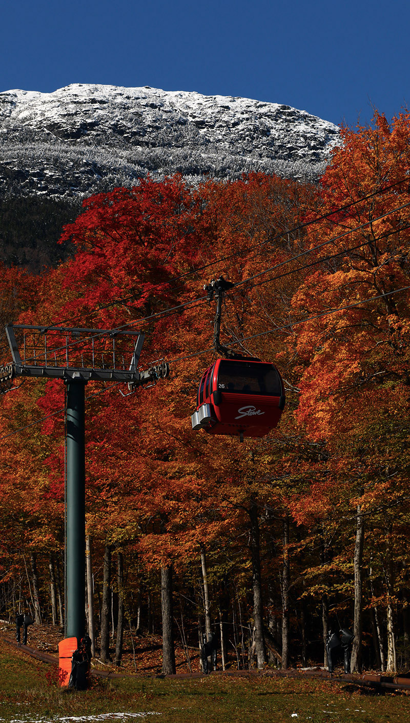 With this latest round of autumn snow culminating in over a foot of accumulation on Mt. Mansfield, the setup was calling for some early season turns. With the way the temperatures were expected to rise today, I think yesterday was the way to go for potentially the best overall snow quality for powder turns, but I was too busy to get out to the slopes. I did get out this morning though, and while snow preservation was undoubtedly better yesterday, the clouds totally disappeared today to reveal incredible snowliage in the sunshine.