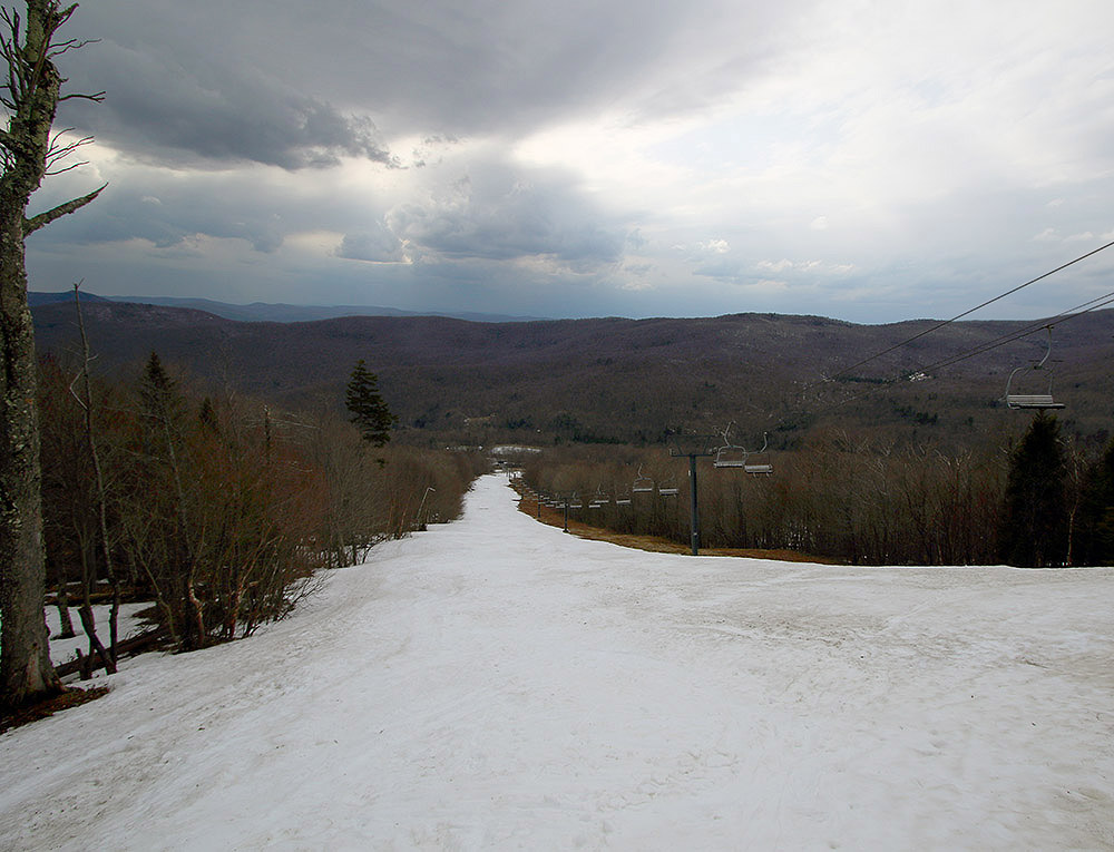 The weather and ski conditions yesterday were excellent, but today kicked that up yet another notch. Today’s temperatures were well up into the 20s F with brilliant winter sunshine and no wind. And after our spell of cold, snowy weather, you could really feel the difference today. Whether you were riding on the slopes, sitting the lifts, or just hanging out at the base area, it was all very comfortable. Also, with brilliant sun, we had great light for action photography; Near base ISO I was able to shoot 1/4000 sec at f/2.8 even in the trees.