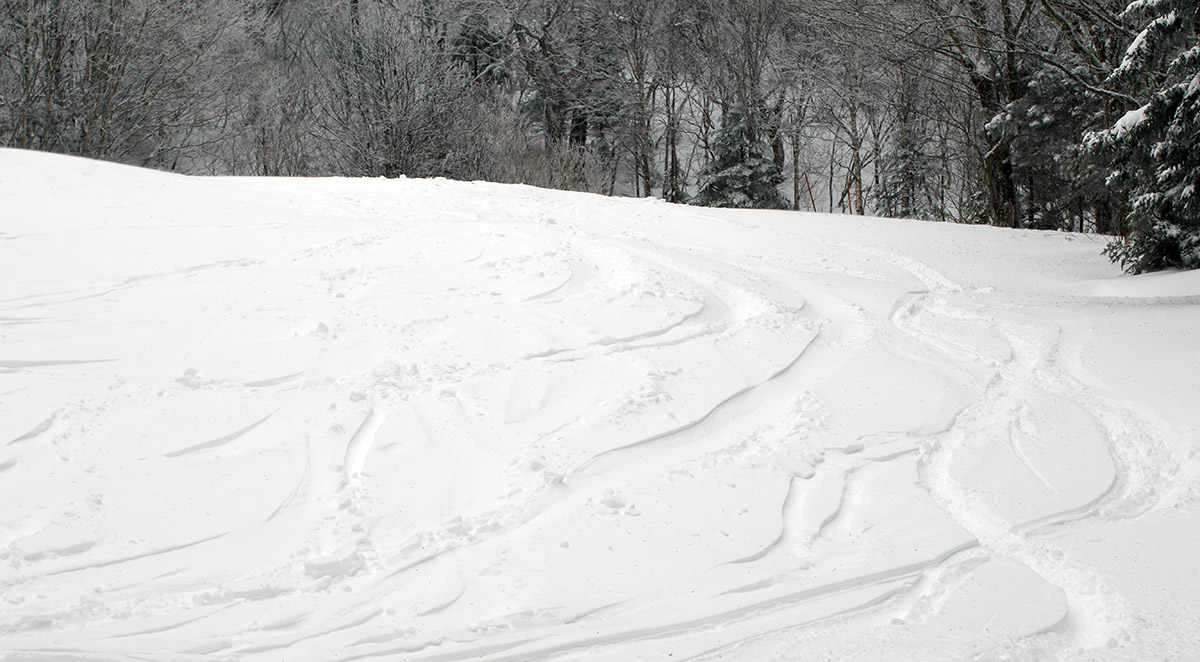Our current storm cycle started up back on Wednesday, with low pressure deepening as it passed over southeast New England and up into Maine. It then headed on up into eastern Quebec, stalled there for a bit, and finally moved to northwest to James Bay, where it’s expected to sit until about Monday. While this isn’t a stacked low-pressure system sitting in the Canadian Maritimes feeding continuous 1+”/hr. snows into the Northern Greens, the broad cyclonic flow supported by the various positions of the low pressure has kept the area in a nice moist westerly/northwesterly flow that’s been feeding snow into the mountains. So, this isn’t a typical 24-, 48-, or 72-hour type of storm cycle; it’s a much more drawn-out sort of “cycle”. I wasn’t sure how the positions of this low would actually play out with respect to snowfall, but since well before the start of the storm the National Weather Service Office in Burlington has been on it – they felt that the potential was there for solid amounts of snow over the protracted period. And they certainly weren’t wrong. It’s been a little tough to total up the mountain accumulations for the full event because it’s already been going on for four days, and the resorts typically only report up to 48-hour accumulations, but it looks like anywhere from roughly 1.5 to 3 feet have fallen in the Northern Greens from the system as of today.