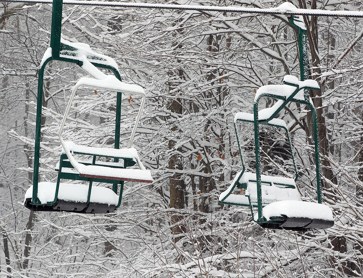 Snow cover was getting patchy this morning in many of the lower valleys, with marginal temperatures and a wet snow/rain mix, and that’s the way things stood at the base of the Bolton Valley Access Road when I headed up. Snow depths really started to pick up above 1,000’ though, and I found 6-9” of snow at the Timberline Base at 1,500’. Up in the Village at 2,000’, snow depths were in the 10-14” range, and there was steady moderate to heavy snowfall.