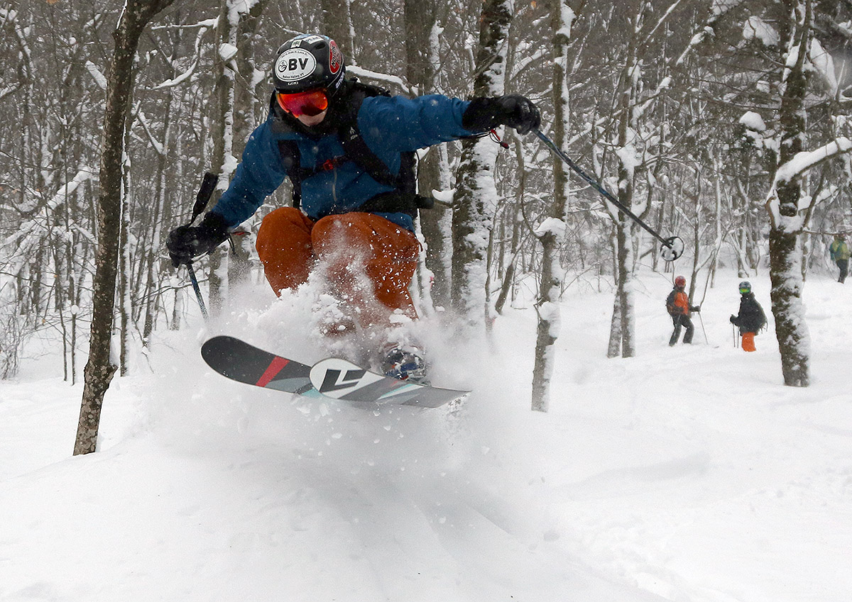 Hi Jake, I’m just catching up on some web page stuff now that I have a chance. It’s great to hear that you’re exploring the Bolton Valley backcountry on your splitboard (not sure if you just mean just the actual network trails or the terrain beyond them as well). I’m on Telemark gear when I’m out there in the backcountry, so I’m lucky in that it gives me optimal mobility with respect to ski touring. Like Bolton’s alpine trail network, their backcountry network has some great steep spots, but it doesn’t have a ton of areas with long, long sustained steep vertical descents. There’s often a flatter area at some point (think about those relatively flat mid-mountain areas for the Wilderness, Vista, and Timberline lifts). With Telemark gear, you just scoot right through those (even small uphill sections are no big deal) and move on to the next pitch. So, moving through those areas and putting together a fun tour descent is a piece of cake on a Tele or other light-weight ski touring gear, but very inconvenient on a splitboard setup. With that said, on the network, a good place for sustained drop without having to deal with intervening flatter areas is the Big Blue, JJ’s, A1A glade section. People like those glades a lot because you can simply run laps from Bryant Cabin/Gardiner’s Lane/North Slope down through those areas to the Bryant Trail, and then ascend the Bryant Trail and repeat it again. You can even start up in the Heavenly Highway area and head down through areas like “Not a Trail” for a longer run, but that can add a bit of a flat around Gardiner’s unless you’re farther south. For really long sustained descents, I’d say the best bet is Catamount Trail Glades/Randy’s/Great White Way/Cotton Brook off the back side. The top of the Catamount Trail Glade is a bit above 3,000’, and you can easily get 1,000’ of pretty sustained, pitched vertical heading down that way. The Waterbury reservoir is at ~600’, so heading all the way down there is over 2,400’ of descent, but the pitch gets milder after the first 1,000’ or so. Along those lines, the whole back side (east side) of Bolton Valley has those longer vertical descents, but most of it is outside the network and thus requires more work than just sticking to the Network. Hopefully that helped, but I’ll be happy to discuss it more if you have questions.