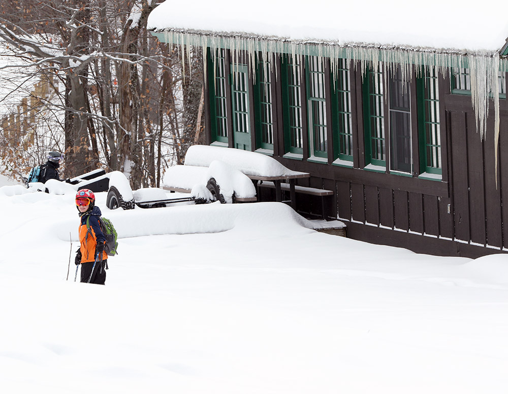 A view of snowy Brant Cabin today as I stopped by briefly during my ski tour for a drink and some photos.