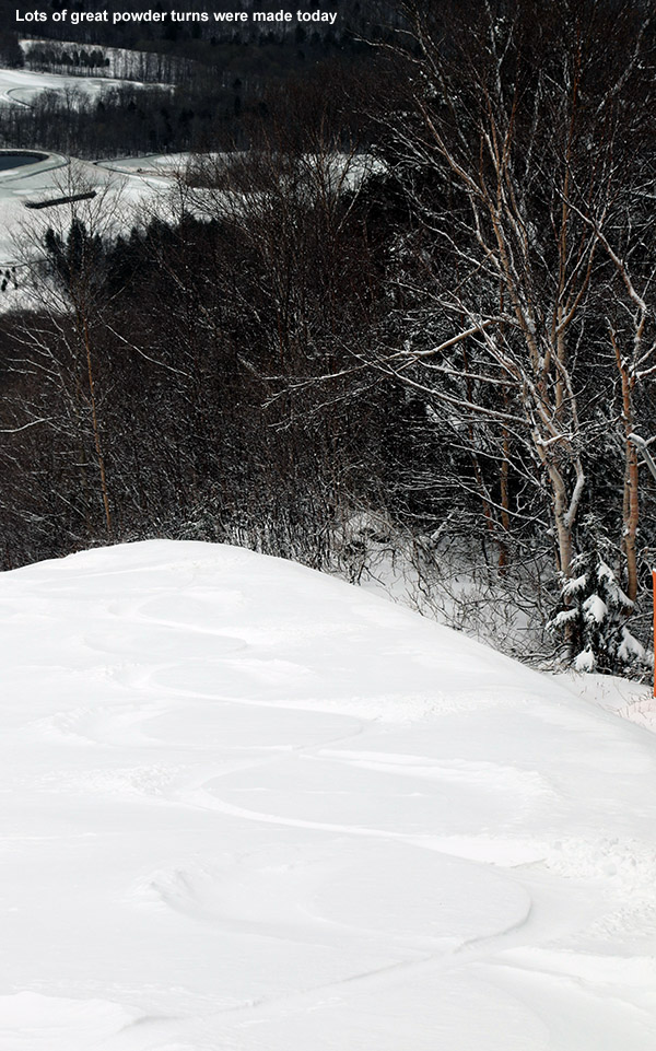 On and off blue skies and plenty of fresh snow were found at Jay Peak today.