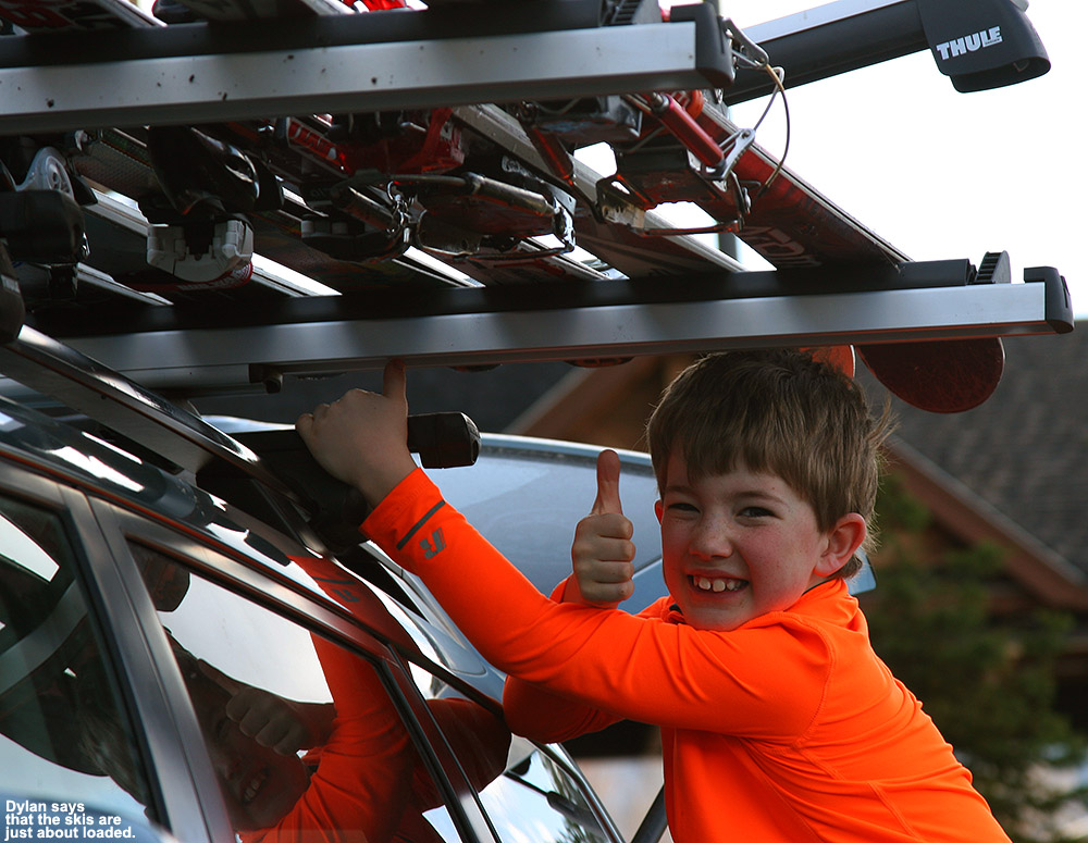We started out at the moving carpet, where Luke and Lilly were having their first ski experience ever. We helped Marc and Jill get them going with some tips, and then once they started getting the hang of things, Marc joined up with E and the boys and me for a run on the Tram. The boys finally got their tram ride, and were impressed with how high and fast it traveled. From the summit we headed down Northway to Ullr’s Dream, and conditions were simply heinous up top. The snow was hard and icy, and I’m glad I’d sharpened our skis, but I’m not sure how much good it did. That’s sort of par for the course anyway with the way the wind blows up there, but the recent storm certainly didn’t help in that regard. We didn’t find much to inspire us to really take another run until we got down onto Kokomo along the lower elevations of Ullr’s Dream. Down there, an inch or two of powder has settled in, and combined with the modest pitches, we were starting to encounter some soft turns