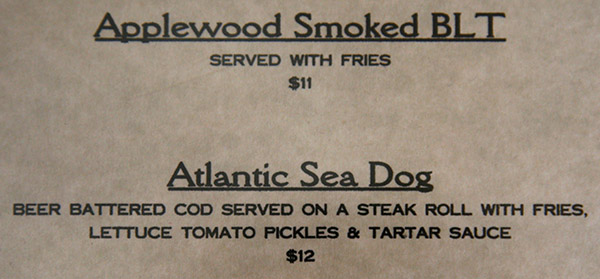 I had the unique experience of the “Atlantic Sea Dog”, and E had the BLT right above it.