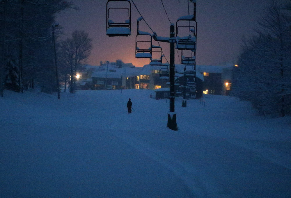 As for the skiing and conditions, one would definitely want more powder above the base than what I found today, but I was still able to get in some decent turns. I had my midfat Tele skis, which were certainly not all that light in the overall spectrum of Nordic equipment, but I was thankful to have something that could handle the descent well. I cut the Burt Trail switchbacks and skied the fairly open forest in some spots, but I could actually stay on the trail itself for the most part where it mattered. Only one person had gone up ahead of me above 2,000’ on the trail and they must have descended another way, because there was no descent track. So the Burt Trail itself was relatively untracked and I got some of my best turns of the afternoon simply by staying on it. The terrain in the 1,500’ to 2,000’ range offers some options off the trail depending on the pitch of the terrain, but I just ran my descent out the trail itself based on the snow conditions and my time. The whole runout back to the Cross Country Center is actually pretty fun, and you can really cruise along at times, but you will have to do some skating and deal with a couple of small uphill sections. It’s quite similar to running out the Bruce Trail though, and indeed the route is identical in some spots, so if you’ve done that you’ll have a good sense for what this is like.