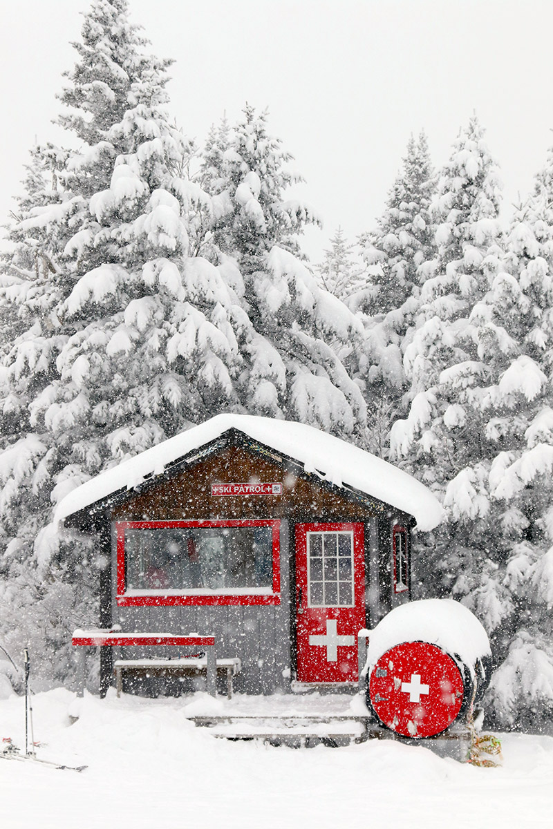We headed back to Spruce Peak for another run, and it turned out to be quite eventful. We were coming down from Sunny Spruce where West Run joins into East Run, and Ty caught the front edge of his snowboard and went down pretty hard. He hurt his shoulder bad enough that he took a ride down to first aid in a ski patrol sled, and after an X-ray at Copley Hospital we discovered that he’d broken his clavicle. It was a fairly gentle slope where it happened, but it was one of those cases where the collision was just right to cause the injury. Ty will certainly have a few weeks of healing to go through, but at least he’s got a positive attitude about it!