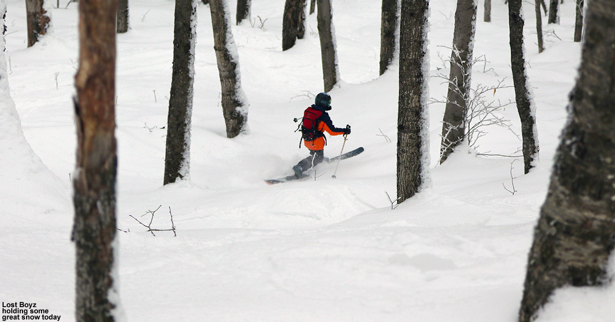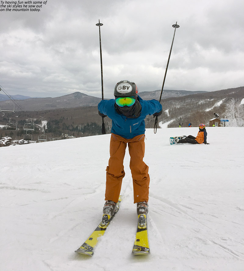 With Winter Storm Quiana brining the potential for mixed precipitation into the area today, we were a bit concerned about conditions for this afternoon’s BJAMS ski program at Stowe. Fortunately, we arrived at the resort around midday to find it snowing, and the overall conditions looked pretty sweet with the trails being topped off with some new dense snow. Ty and Dylan took an early run on Sunny Spruce, and came back with very positive comments about the conditions.