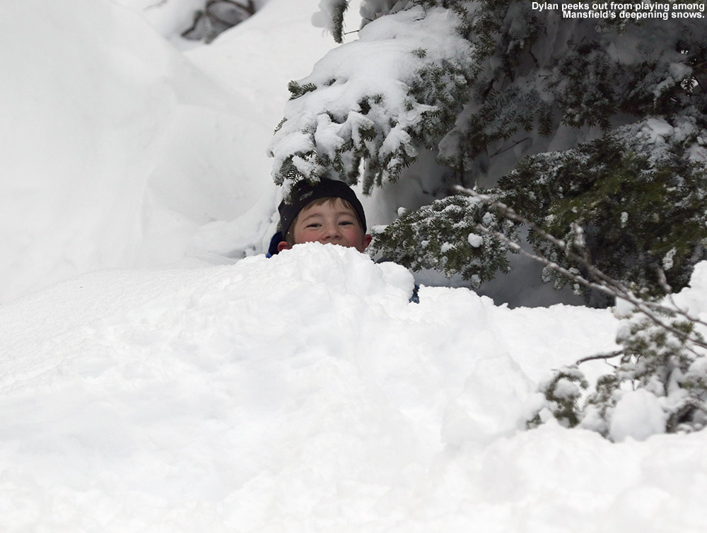 The latest weather system to come into the area has been named Winter Storm Theseus. Snow associated with the storm started up on Friday and left nearly a foot of at some of the local ski resorts, so Dylan and I headed up to Bolton Valley this morning for what we hoped would be some great powder skiing, and we weren’t disappointed.