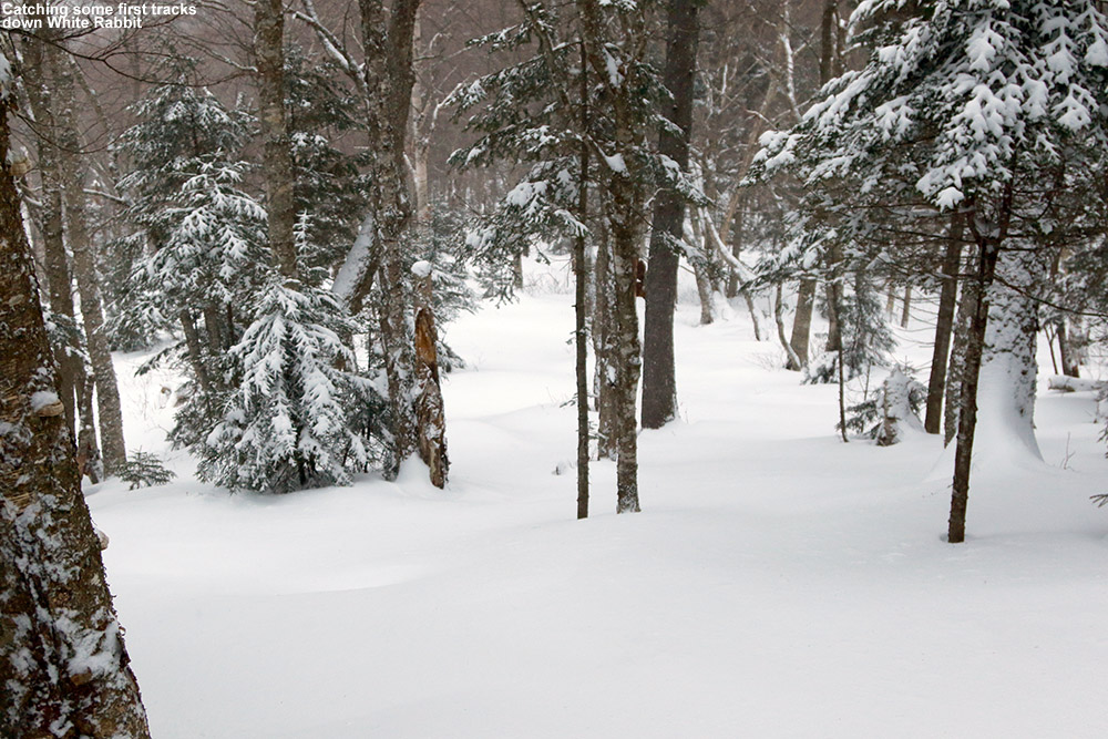 Skier traffic has been reasonably light, so there’s still plenty of terrain to track up at Bolton Valley as of today.