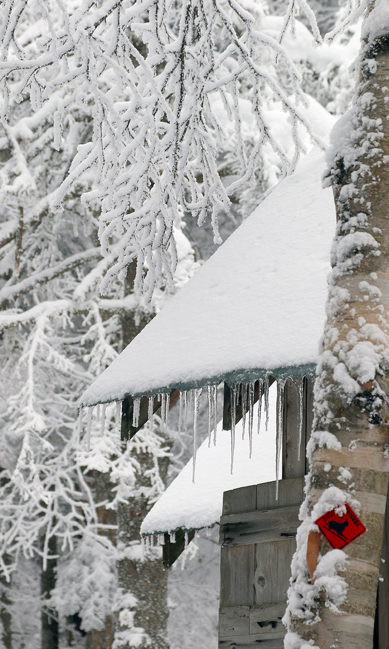 Trees bend under the weight of the heavy snow as we ascend the Schweitzer Mountain Road during the storm – driving was quite a challenge up the steep, switchback-filled road that rises 2,000 feet to the resort.
