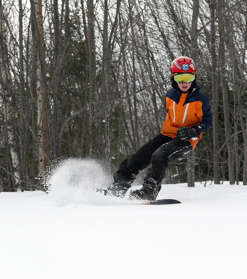 Dylan charging through some of this afternoon’s powder on his new snowboard as we kick off the BJAMS ski program for the season at Stowe.