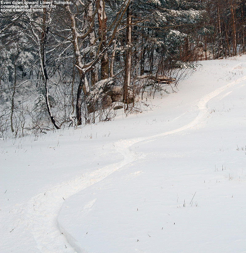 In the New England Subforum at American Weather, Powderfreak has done a fantastic job of keeping everyone apprised of the snow conditions at Stowe, so for today’s ski tour, E and I decided to mix it up a bit and head to mighty Mt. Mansfield. On the approach to the resort, we found spotty snow cover in the valleys building to roughly 12-15” of snow at 1,640’ at the Midway Lodge. Today was a simply beautiful November day, with temperatures a bit below freezing, little to no wind, and some peeks of sun to keep it bright and create excellent views but not throw out so much sun that it substantially affected the quality of the snow.